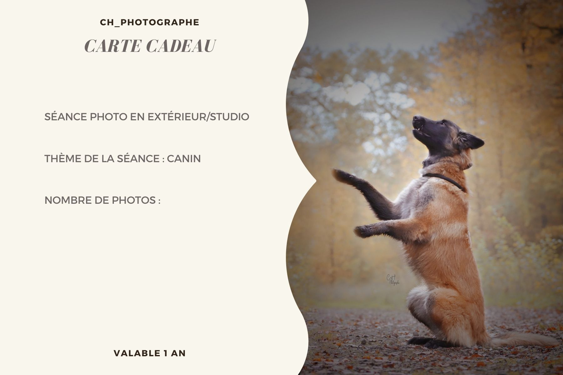 Carte cadeau pour une séance photo canine