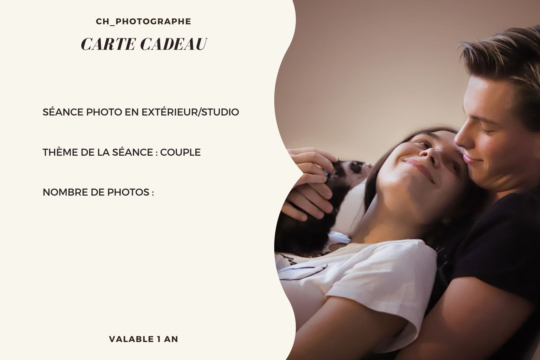Carte cadeau pour une séance photo couple